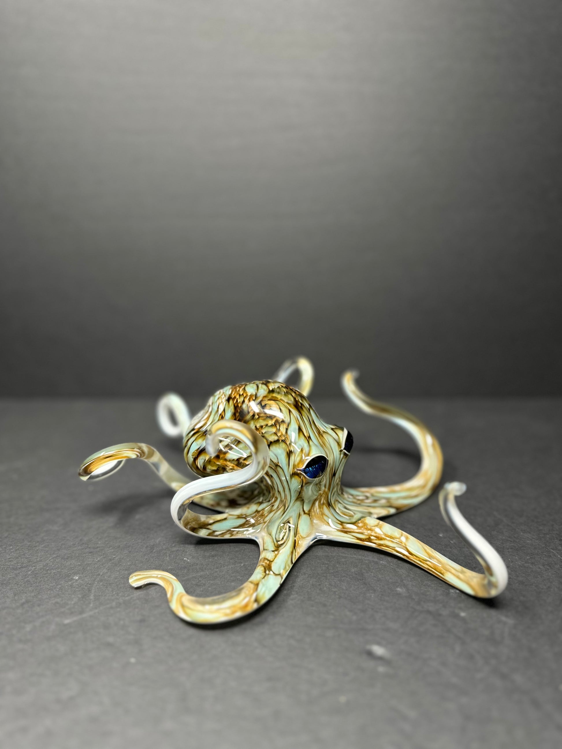 Bring the ocean to life with this stunning hand-blown glass Octopus, expertly sculpted by artist Michael Hopko. Renowned for his marine wildlife creations, each piece captures the essence of underwater movement and character with remarkable detail and vibrant artistry.