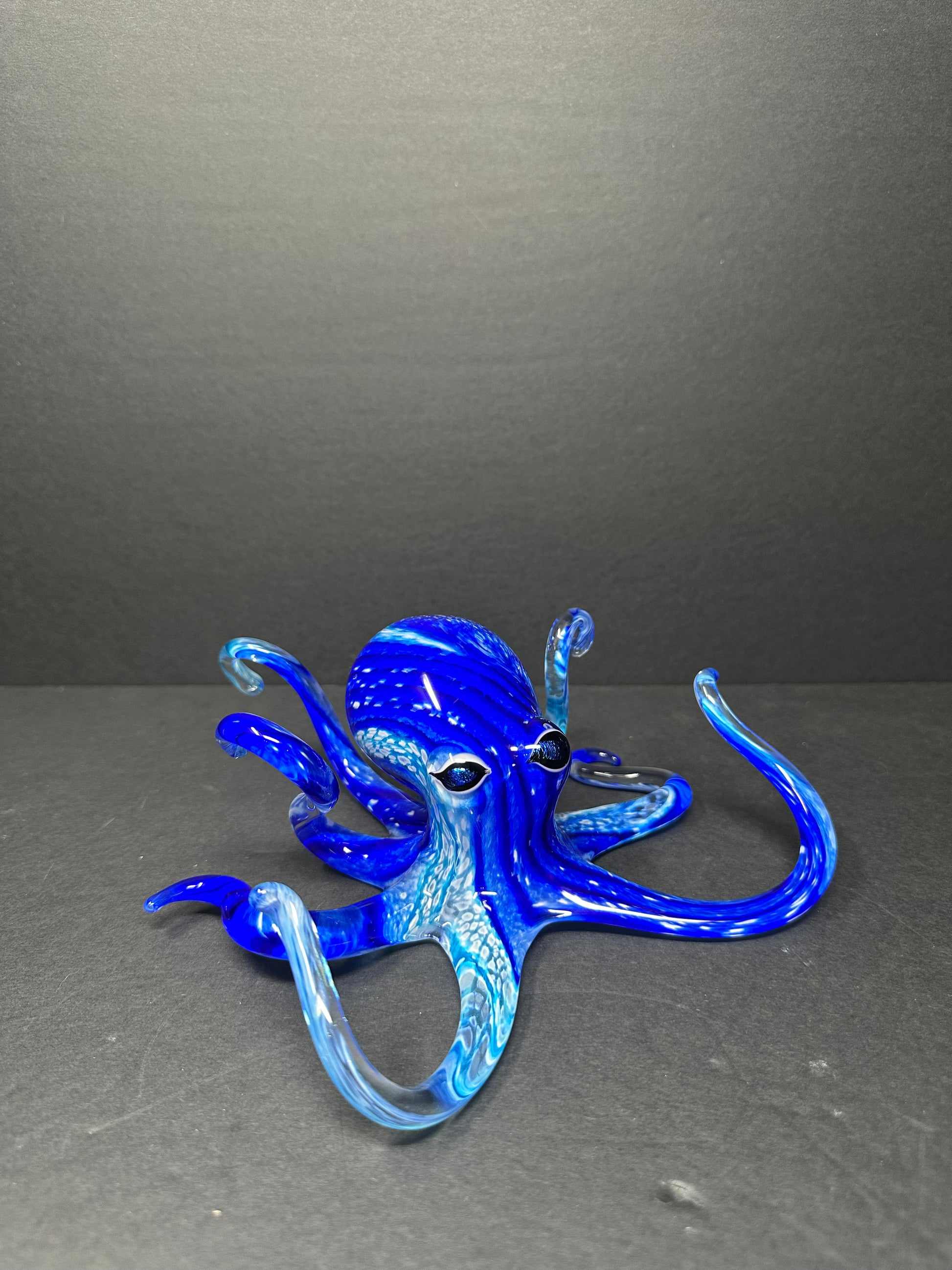 Bring the ocean to life with this stunning hand-blown glass Octopus, expertly sculpted by artist Michael Hopko. Renowned for his marine wildlife creations, each piece captures the essence of underwater movement and character with remarkable detail and vibrant artistry.