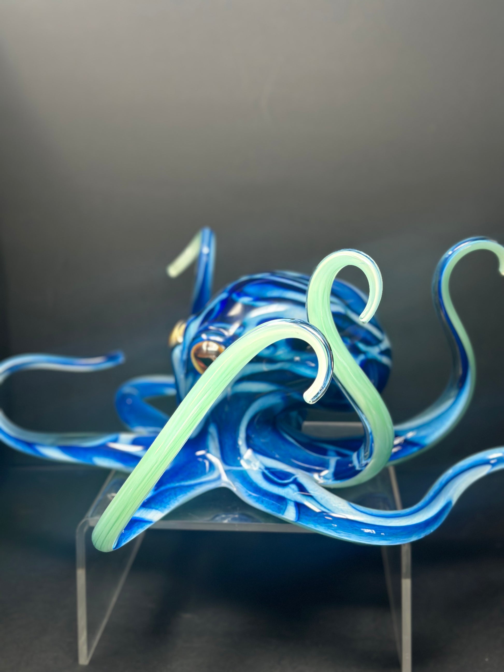 Bring the ocean to life with this stunning hand-blown glass Octopus, expertly sculpted by artist Michael Hopko. Renowned for his marine wildlife creations, each piece captures the essence of underwater movement and character with remarkable detail and vibrant artistry.