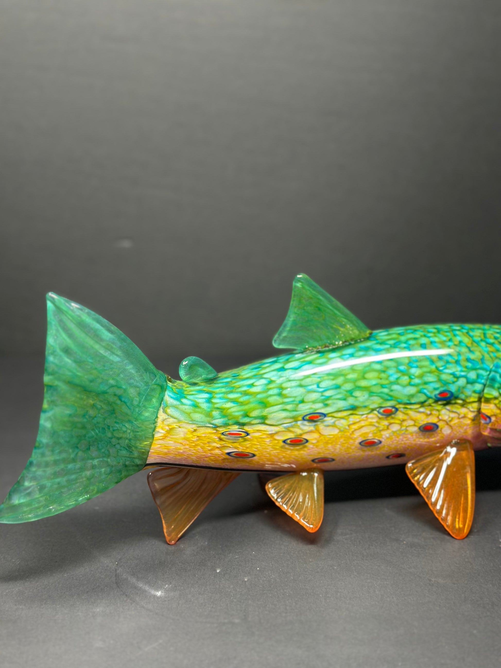 Classic Style – A naturalistic version that showcases the trout’s sleek form and vibrant coloring in rich, translucent glass—perfect for a timeless, lifelike display.