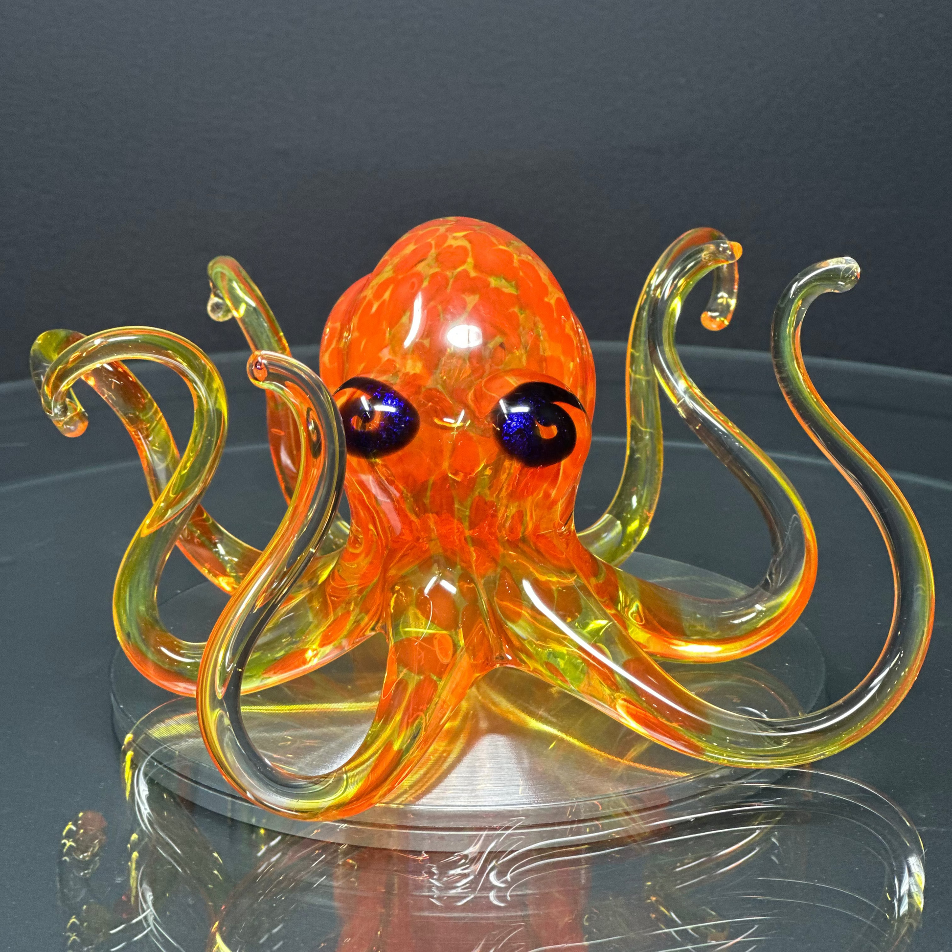 Bring the ocean to life with this stunning hand-blown glass Octopus, expertly sculpted by artist Michael Hopko. Renowned for his marine wildlife creations, each piece captures the essence of underwater movement and character with remarkable detail and vibrant artistry.