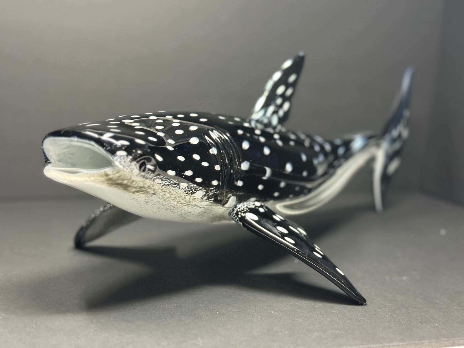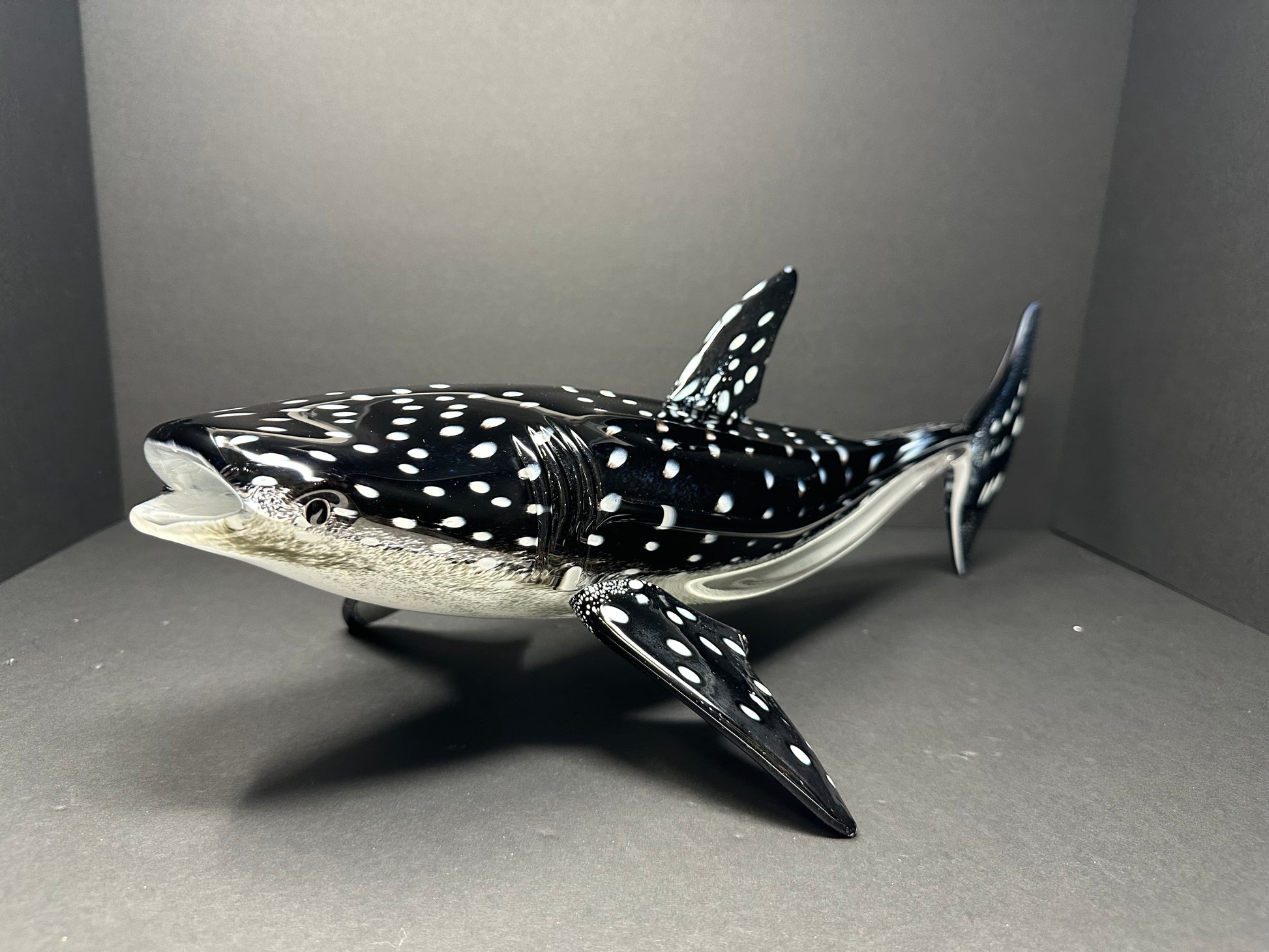 Make a majestic statement with this impressive 20" hand-blown glass Whale Shark sculpture. Celebrating the gentle giant of the sea, this piece captures the whale shark’s massive size, graceful movement, and distinctive spotted pattern with exquisite detail and artistry.