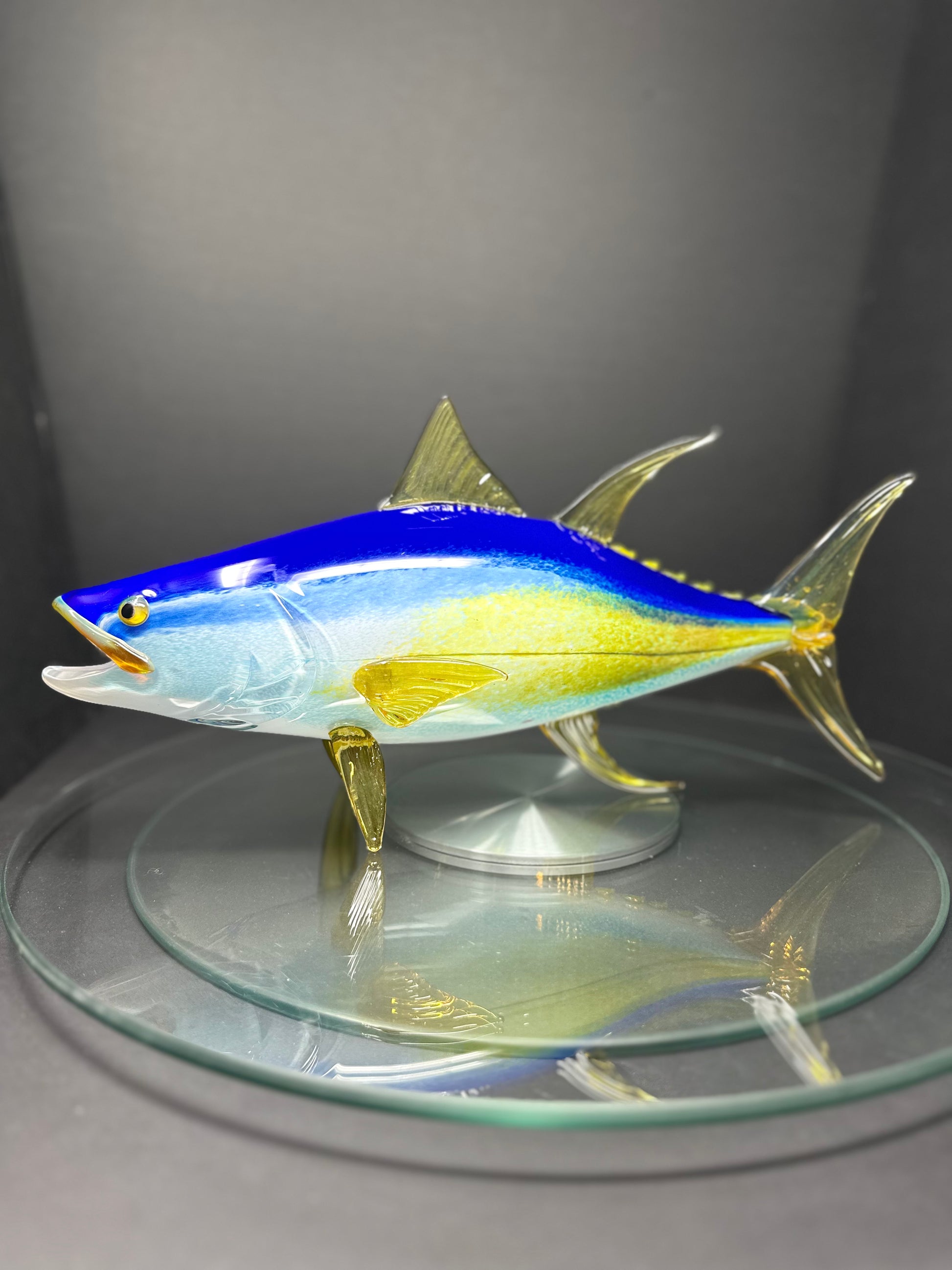 Perfect for collectors and ocean enthusiasts, the sculpture highlights the Yellowfin Tuna’s muscular build and striking yellow fins in rich, translucent hues.